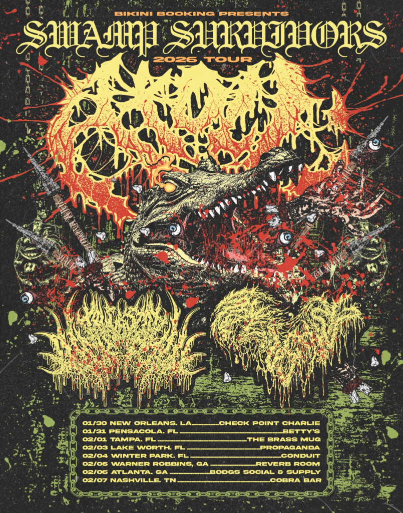 The single sets the stage for the Swamp Survivors Tour 2026, a week-long run of brutal, high-octane shows tearing across the American South beginning January 30, 2026. Joined by equally savage support from TRUCKSTOP DICKPILL and SQUELCHING, the tour promises a visceral, sweat-drenched live experience steeped in ATOLL’s signature blend of groove, slam, and technical ferocity.