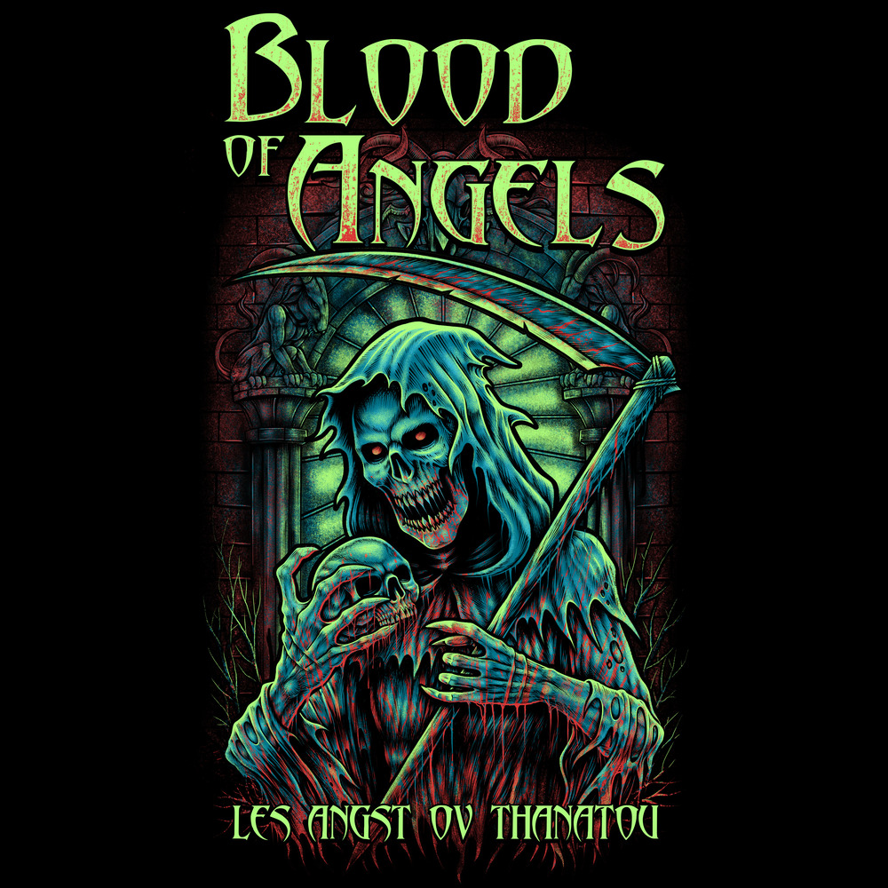Les Agnst ov Thanatou represents a significant evolution for BLOOD OF ANGELS. Written during a period marked by widespread uncertainty and personal loss, the album presents a unified narrative that traces humanity’s response to death through resistance, ritual, memory, and acceptance. Recorded at Underground Studios in Tampa, Florida, the album was produced by Bob Noxious, Preston DiCarlo, and BLOOD OF ANGELS, with mixing by Preston DiCarlo and mastering at Soundlab in New York City.