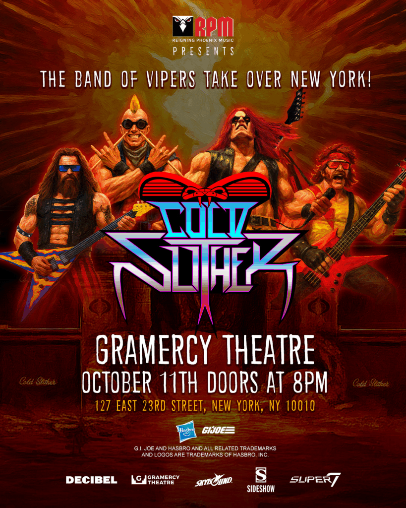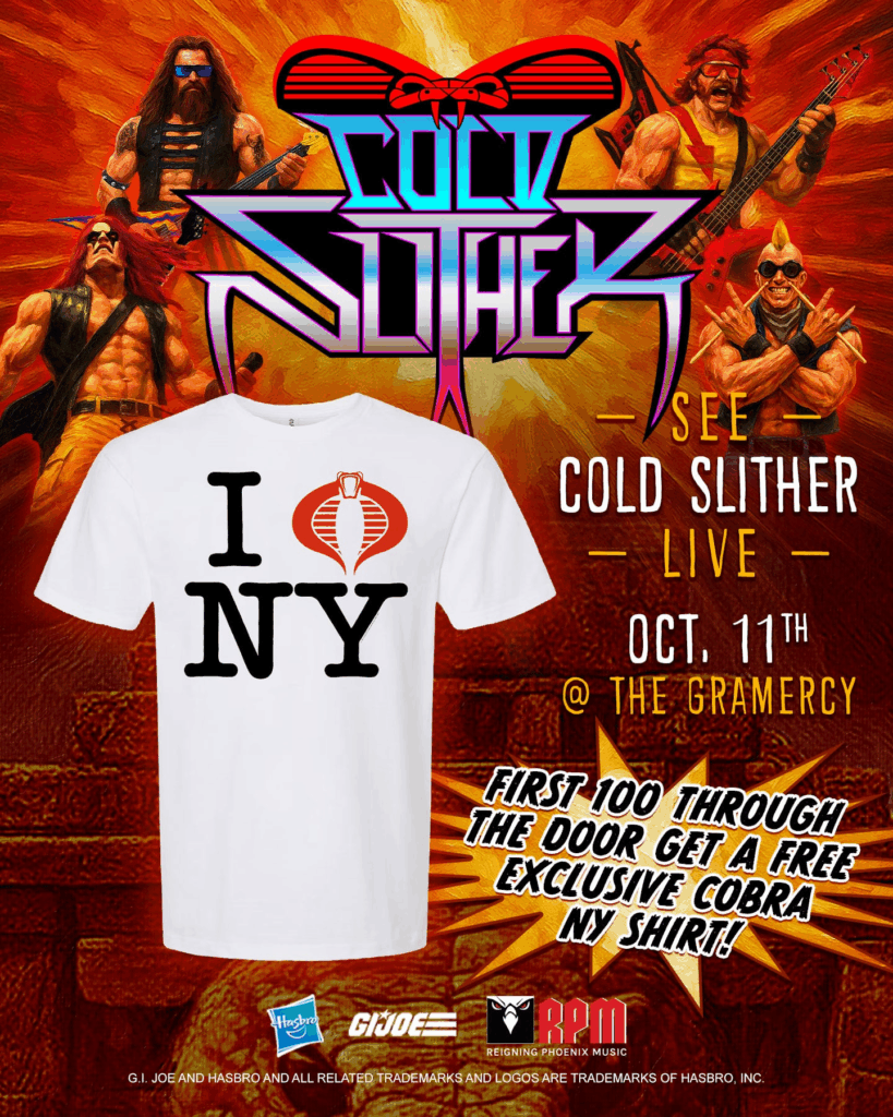 The firestorm continues on October 11th, when COLD SLITHER storms into New York City for a one-night-only takeover of the Gramercy Theatre. The show takes place during the same weekend as New York Comic Con (NYCC) 2025, promising an explosive celebration of nostalgia and modern heavy metal power. Fans can secure their place in history and get tickets HERE. The first 100 people through the door will receive a limited edition Cobra NY shirt, available exclusively at this show and never to be sold again.