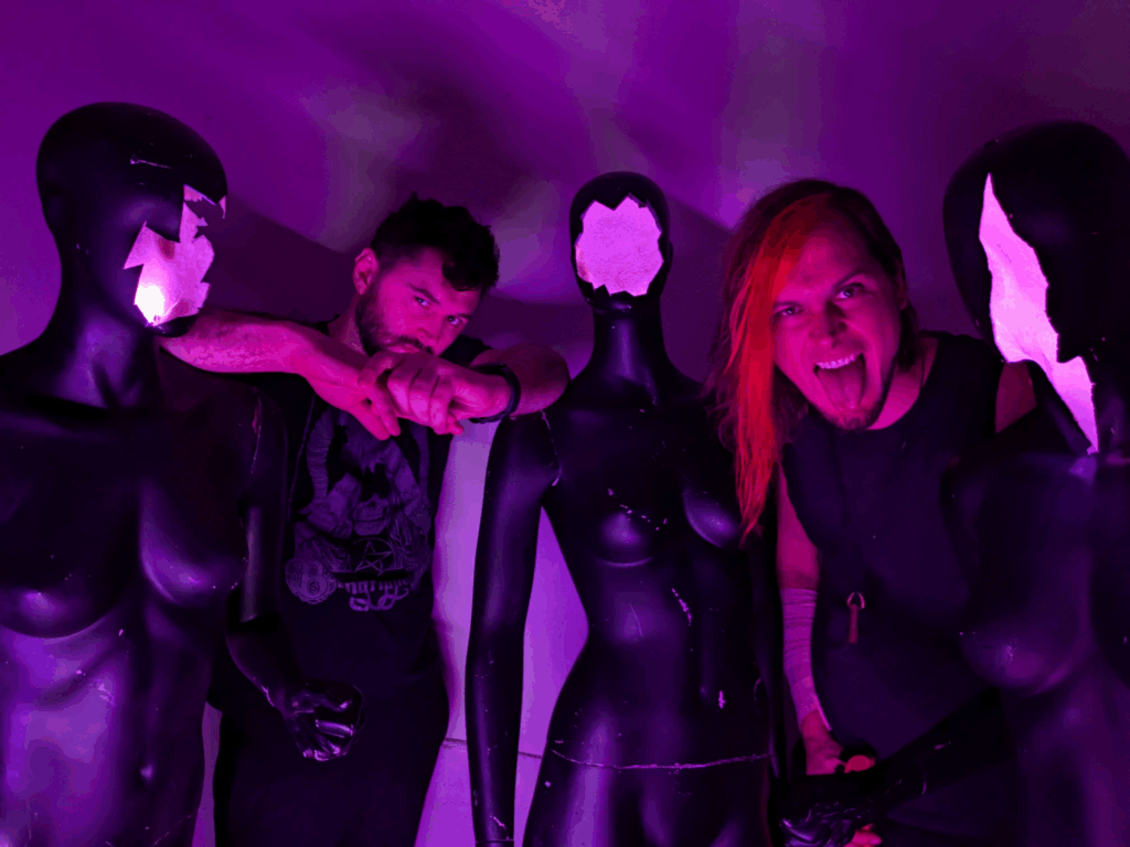 Forged at the intersection of grief, resilience, and radical creativity, ELECTROMANCY is a boundary-defying black/doom/death metal duo from the Bay Area blending blistering sonic chaos with DIY robotics and raw human emotion. Formed in June 2019 by composer and vocalist Steph Tranovich (they/them), alongside co-vocalist Shaun Gallagher (he/him), ELECTROMANCY uses custom-built robotic instruments as a form of assistive technology—enabling Steph to continue making music despite their chronic illness. Their discography, spanning from the brutal Technopagan to the emotionally complex Visions of Utopia, chronicles Steph’s journey through disability and healing, channeling pain, perseverance, and moments of cathartic joy. With influences like THOU, MESHUGGAH, and LITURGY, the band fuses intricate polyrhythms with avant-garde metal, while exploring themes of queer identity, grief, and radical strength. Their live shows are visceral, theatrical experiences—robot guitars and LED-lit mannequins sharing the stage with two unapologetically human voices. ELECTROMANCY isn’t just for metal fans—it’s for anyone searching for something different, something real, and something powerful.