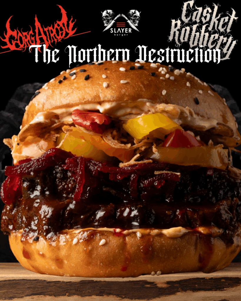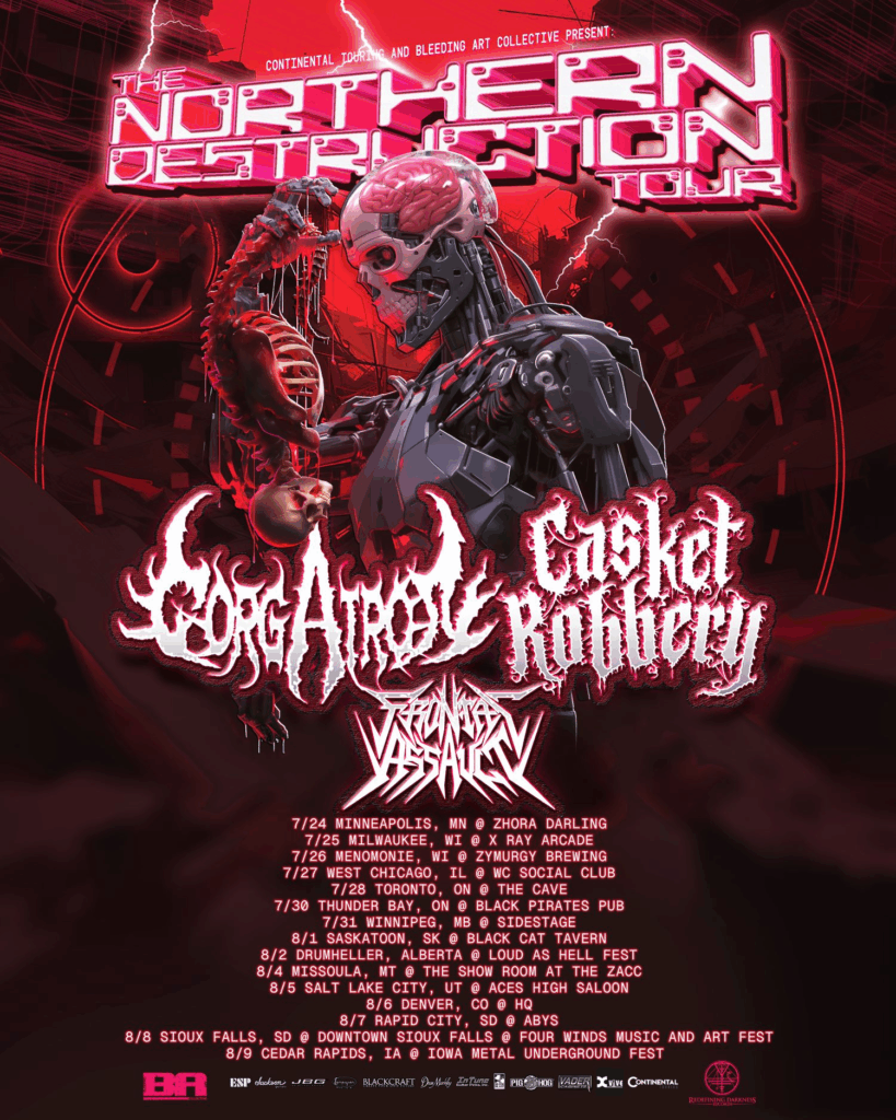 Death metal juggernauts CASKET ROBBERY and GORGATRON have officially kicked off their co-headlining Northern Destruction tour today in Minneapolis, MN. To mark the occasion, they’ve teamed up with metal-friendly eateries in select cities to unleash exclusive culinary creations that match the intensity of their live shows.