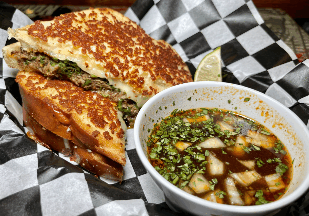 This birria grilled cheese is a molten tribute to the pit: rich, spicy, and unapologetically heavy. Grab it while it lasts before CASKET ROBBERY and GORGATRON annihilate the stage at HQ.