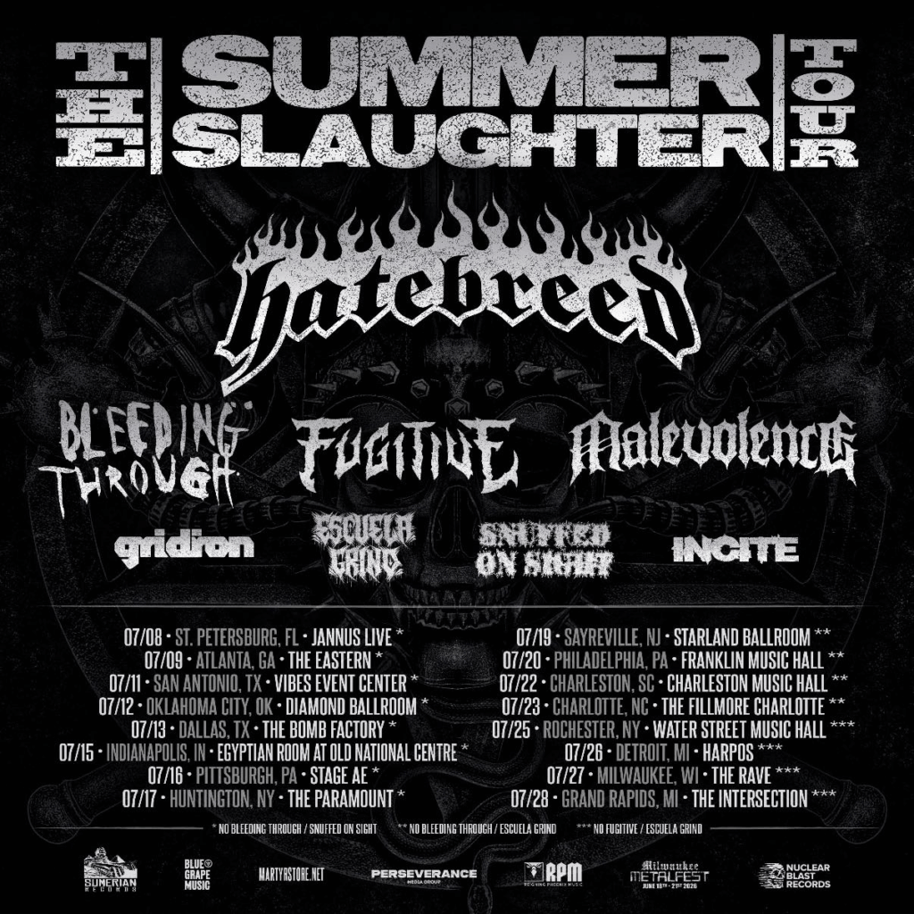 “Summer Slaughter” 2025 tour dates with HATEBREED, FUGITIVE, MALEVOLENCE, GRIDIRON, ESCUELA GRIND and INCITE:
