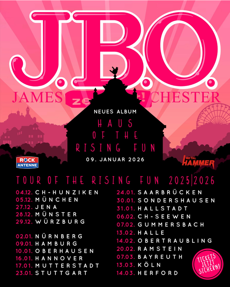 While the four-piece is currently finishing their new record with Christoph Beyerlein and Stephan Ernst (Separate Sound Studio & Streetlife Studios), fans can already grab tickets to join their “Haus Of The Rising Fun” release live celebrations. J.B.O.’s current itinerary can be found below!
