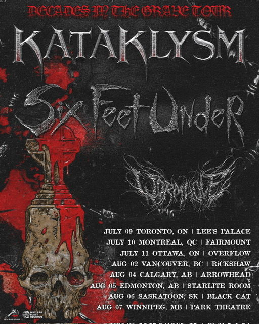 An obliterating onslaught of death metal is set to grace stages around North America this summer. Montreal death metal juggernaut KATAKLYSM joins forces with Tampa, Florida’s brutal ensemble SIX FEET UNDER for their co-headlining summer tour 2026.