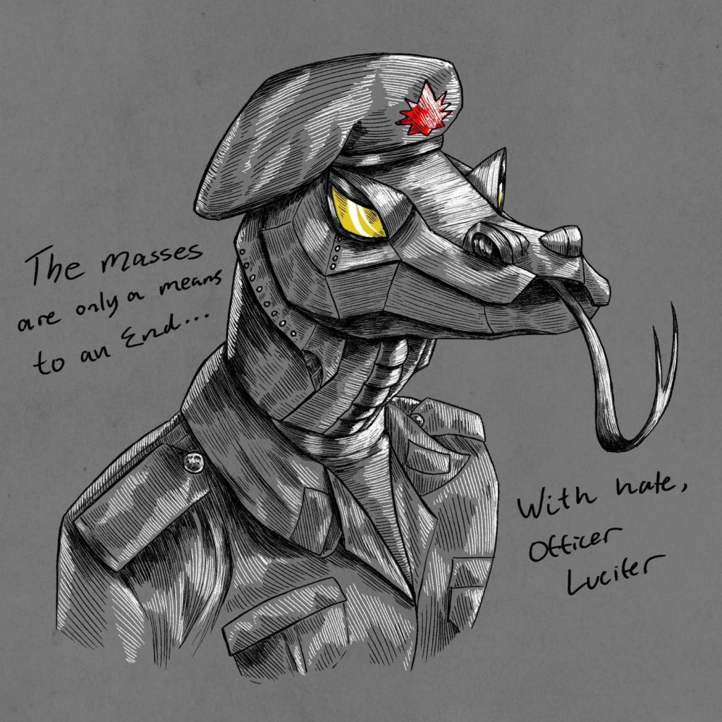 Beyond the music, OFFICER LUCIFER functions as a fully realized world. Band members are portrayed as hybrid soldiers assigned distinct military-style ranks, reinforcing a shared identity rooted in rebellion, unity, and defiance. The result is not just a collection of songs, but a living mythos designed to confront listeners and challenge complacency.